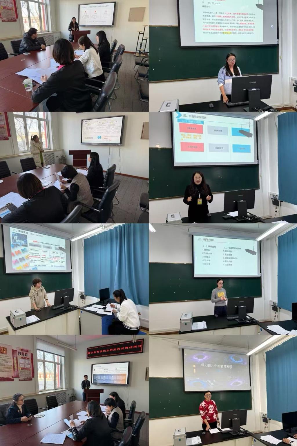 本次试讲涵盖《中国建筑史》《中国古典园林赏析》《红色影视与社会思潮》《科幻影片中的物理密码》等9门通识选修课程,来自不同学科背景的教师依次登台展示。试讲过程中,教师们围绕课程整体框架设计、教学内容组织展开说课,并进行了10分钟的现场教学演示。从中国传统建筑的营造智慧,到红色影视作品中的时代思潮;从趣味机器人的创新实践,到健康美食的生活美学,各位教师结合课程特色,运用多媒体课件、案例分析等多样化教学手段,展现了扎实的教学基本功与鲜明的课程设计思路。