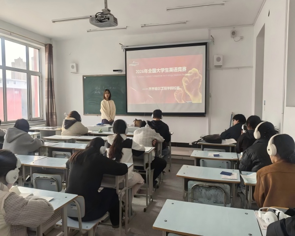 4月12日上午,学校举办2026年全国大学生英语竞赛(齐齐哈尔赛区)校内选拔赛。本次比赛由通识教育学院大学外语教研室组织,共设置4个标准化考场,来自学校5个学院的100余名学生踊跃参加。